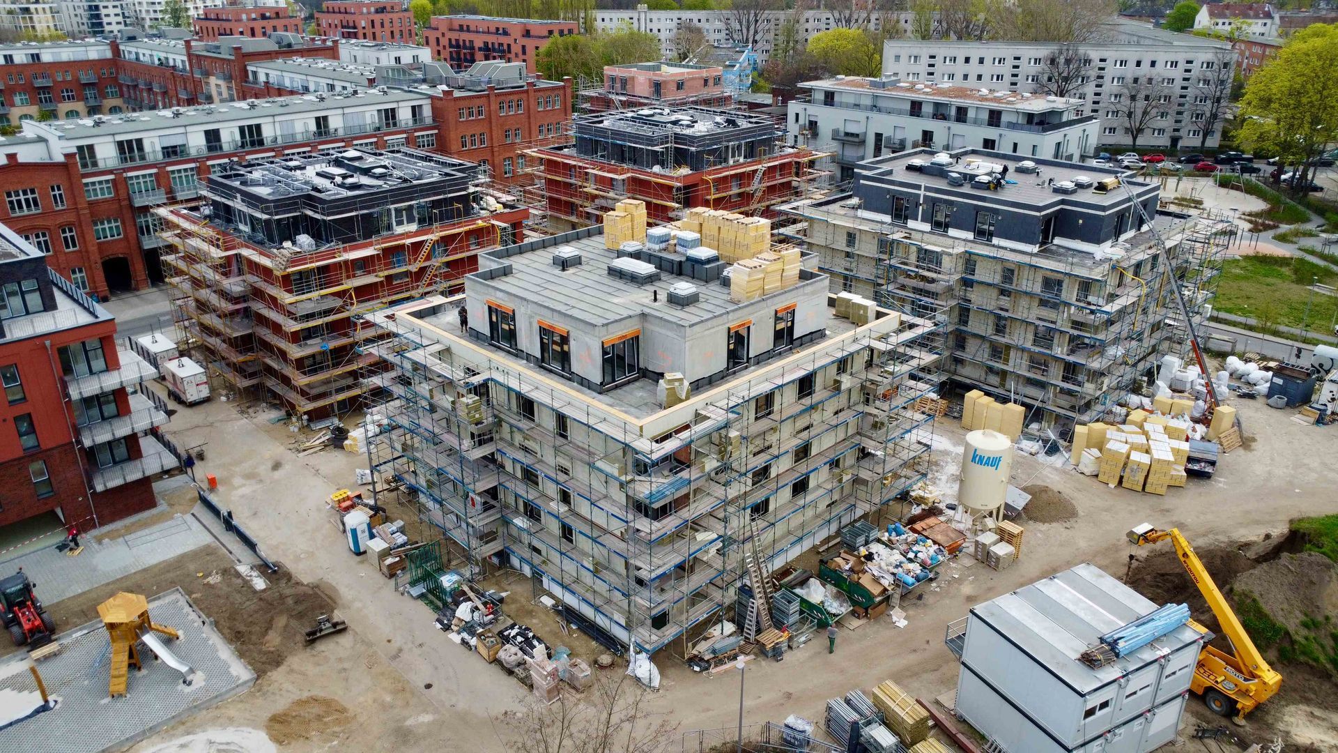 Mit dem Mai zeigt sich nicht nur die Natur von ihrer schönsten Seite – auch im Spreequartier Spindlersfeld blühen die Fortschritte weiter auf. Die Entwicklungen bei Parkside III und IV gehen sichtbar voran. Der Spielplatz bei Parkside III ist fertiggestellt! Mit modernen Geräten, Sitzmöglichkeiten und sicherer Umgebung bietet er künftig einen beliebten Treffpunkt für Kinder und Eltern. Auch rundherum tut sich viel – die ersten Rasenflächen sind bereits sichtbar. Zudem wurden erste Bäume gepflanzt. Im Inneren der Parkside-IV-Gebäude geht es zügig voran. Der Innenausbau schreitet kontinuierlich weiter und legt den Grundstein für moderne, lichtdurchflutete Wohnungen.