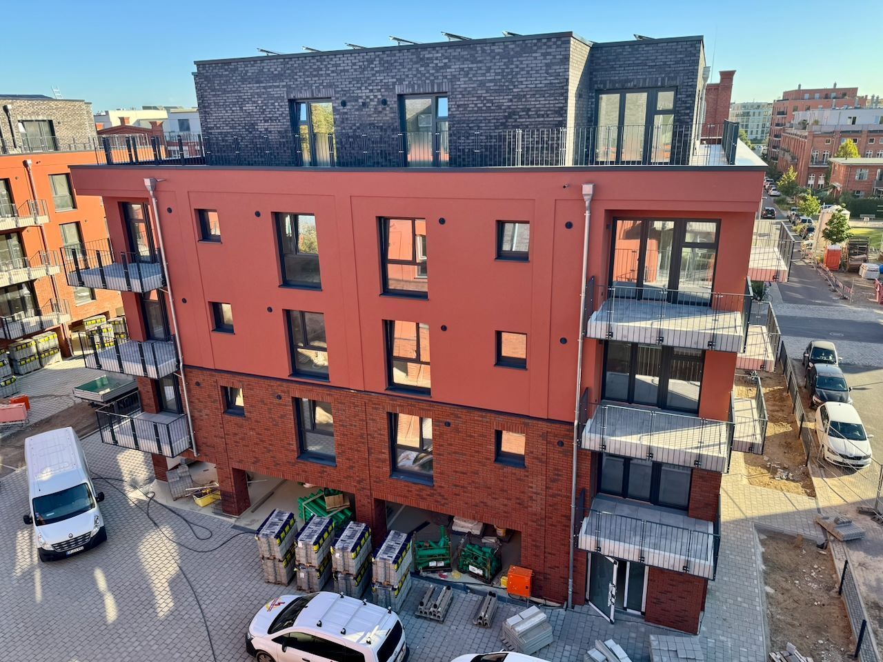 Ein wichtiger Meilenstein ist erreicht: Die Fassade des letzten Mehrfamilienhauses von Parkside IV wurde fertiggestellt. Damit präsentieren sich nun alle Tower in einem einheitlichen Erscheinungsbild mit der charakteristischen roten Klinkerfassade – ein architektonisches Highlight, das dem Quartier einen hochwertigen, stimmigen Gesamteindruck verleiht.