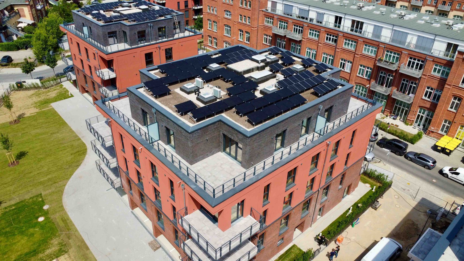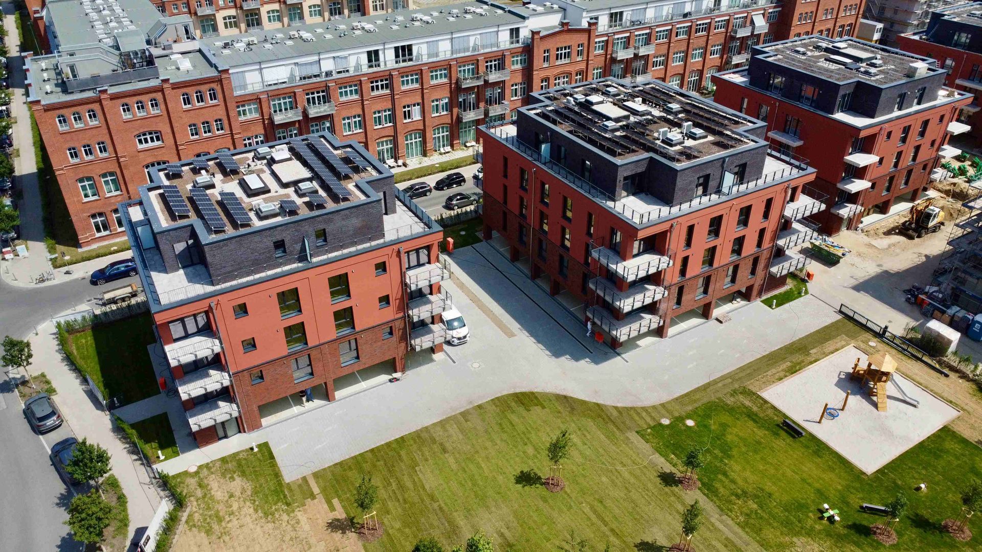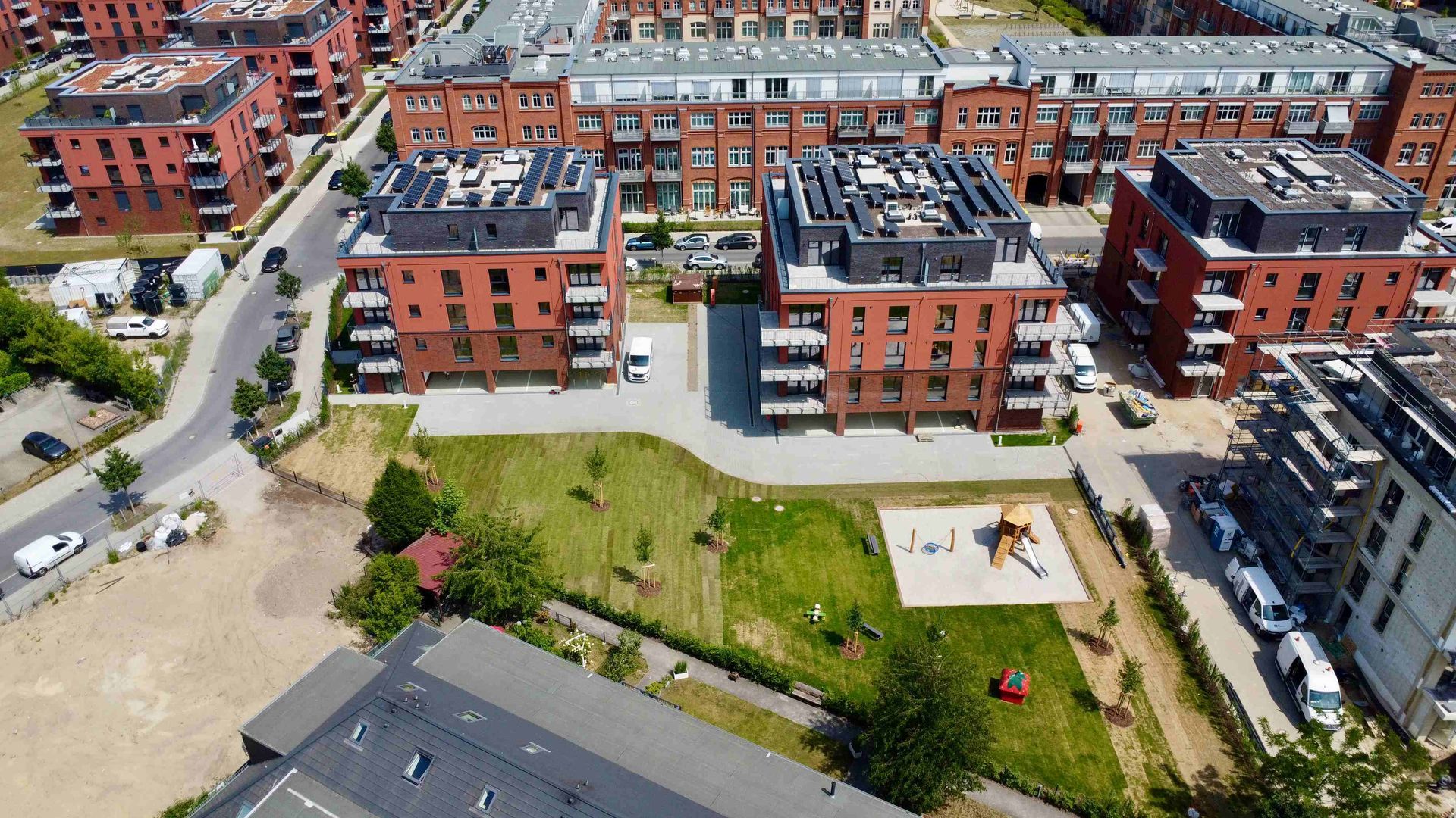 Parkside III ist vollständig fertiggestellt! Die Außenanlagen präsentieren sich in ihrer finalen Form – der Rasen bedeckt nun die Grünflächen, und sämtliche Bäume sind gepflanzt. Auch die Photovoltaik-Anlage wurde auf dem Dach installiert und leistet künftig einen Beitrag zur nachhaltigen Energieversorgung im Quartier. Noch in diesem Monat findet die Übergabe des Gemeinschaftseigentums an die neuen Eigentümer statt.